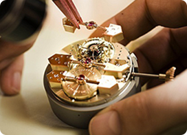 确认订单,技师拆解腕表、表壳 和机芯,取出指针和表盘。